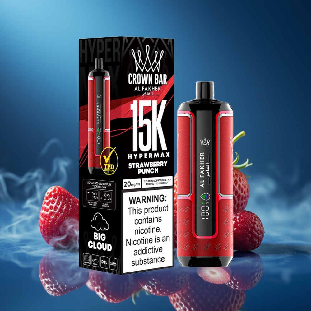 Al Fakher Crown Bar Hypermax Disposable Vape Kit 15K Aardbeien Punch 22ml Type-C