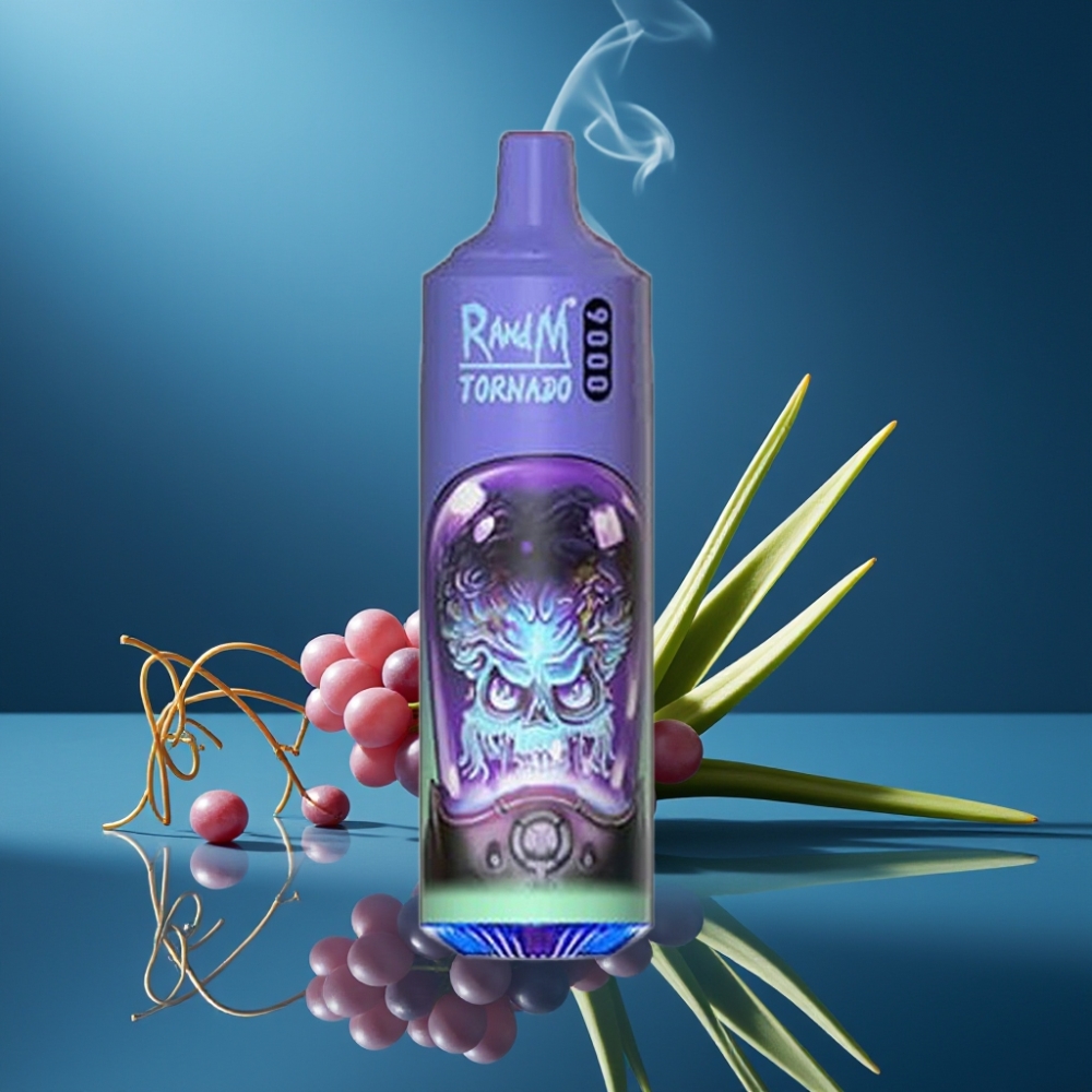 RandM Tornado 9000 Puffs Disposable Vape Aloë Druif RGB Display Mesh Coil