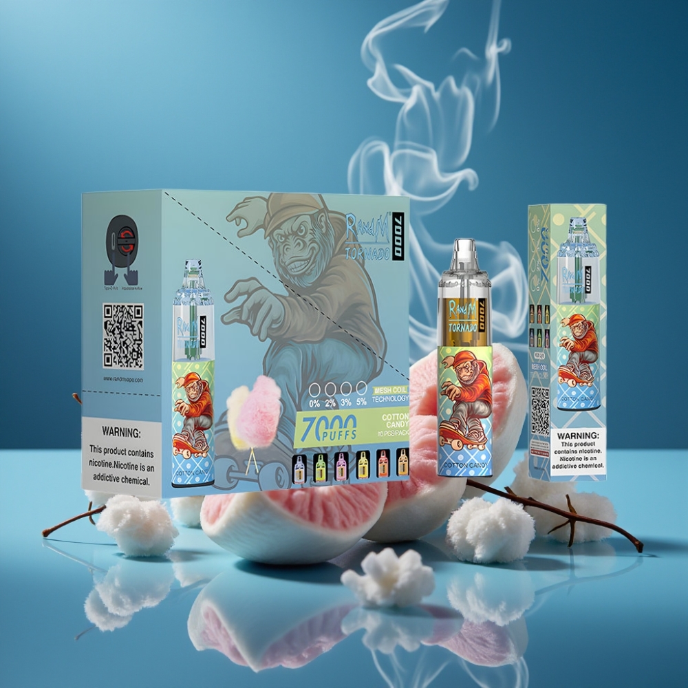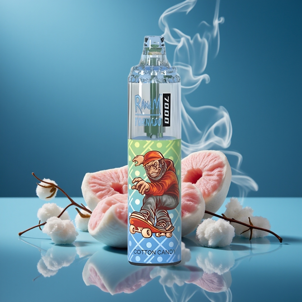 RandM Fumot Tornado 7000 Puffs Suikerspin Disposable Vape met Mesh Coil en RGB Light