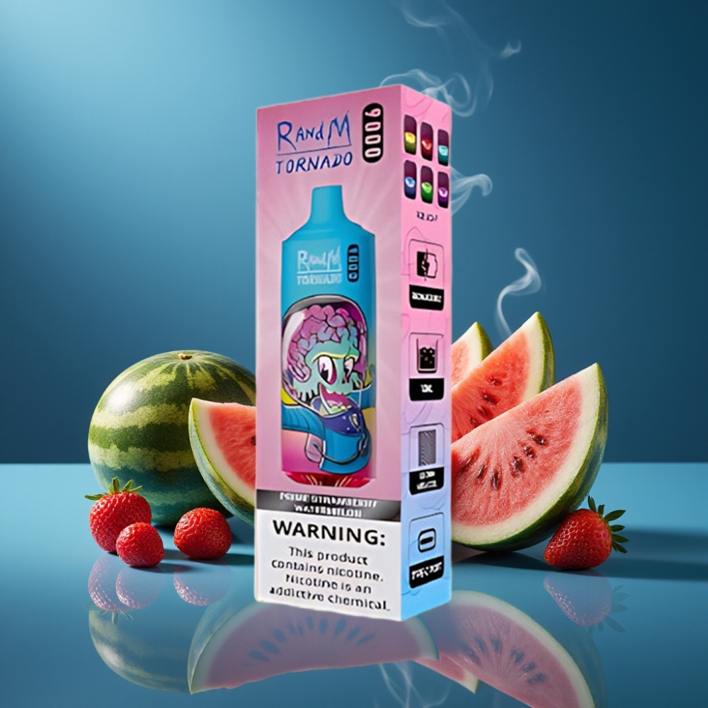 RandM Tornado 9000 Puffs Prime Aardbei Watermeloen 18 mL Mesh Coil RGB Display