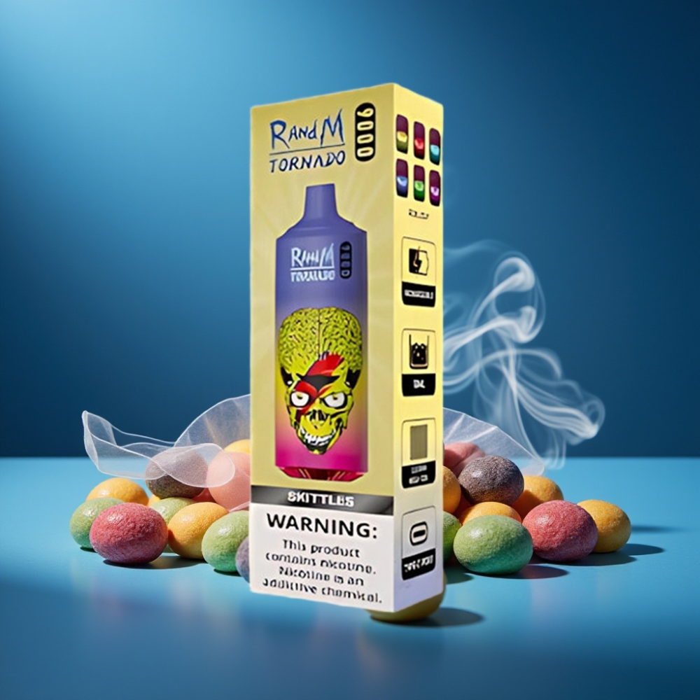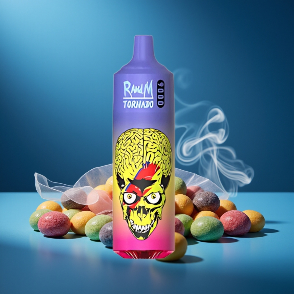 RandM Tornado 9000 Puffs Skittles RGB Display Mesh Coil vape groothandel België
