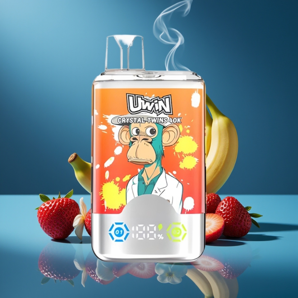 UWIN Crystal Twins 40000 Puffs Aardbei Banaan Liefde 66 Mesh Coil 0.6 Ohm Type-C